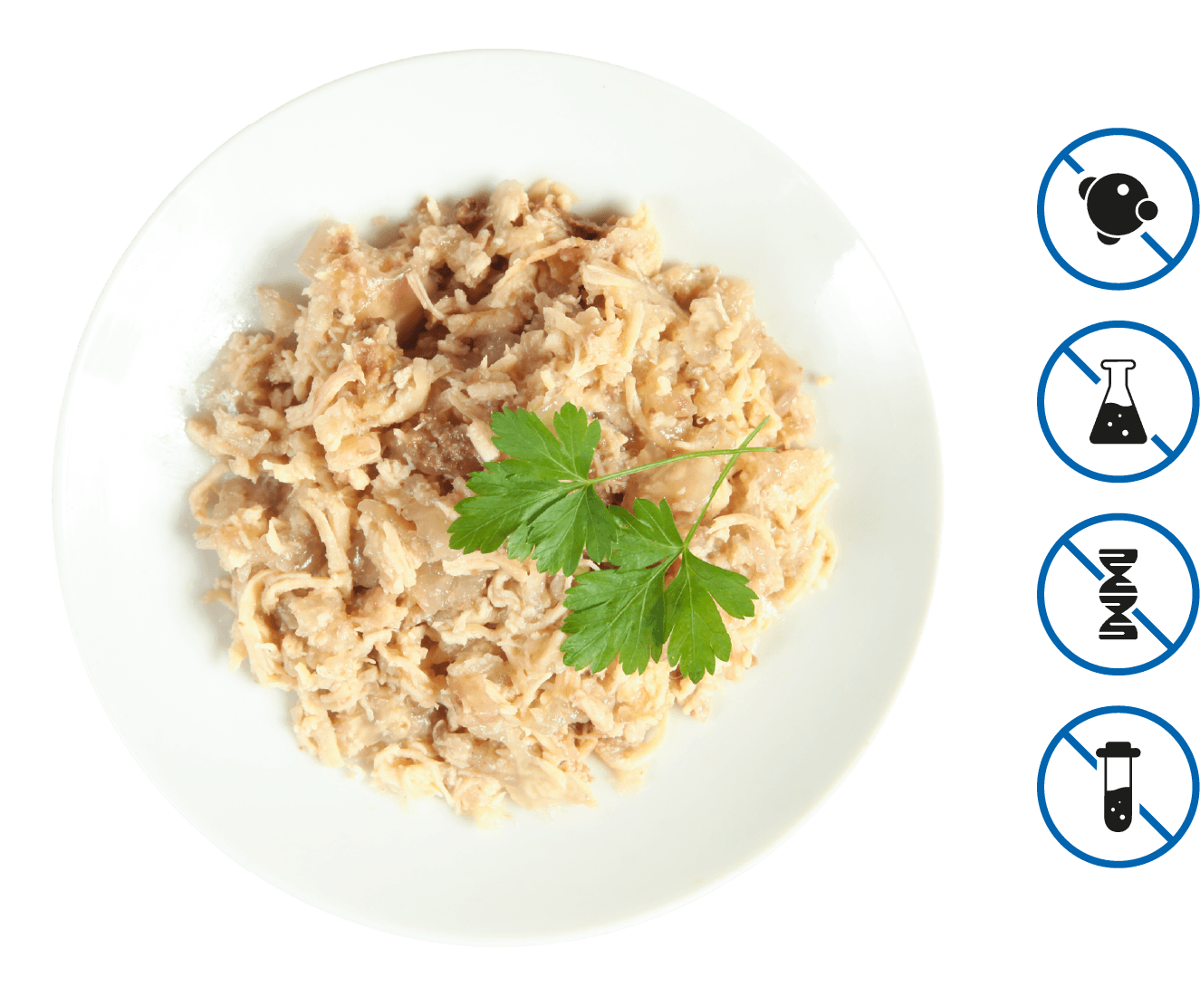 Консервы не содержат ароматизаторов, усилителей вкуса, консервантов, искусственных красителей и ГМО.