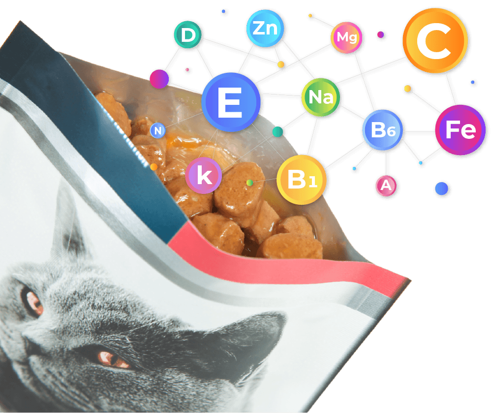 Сбалансированная формула содержит белки, жиры, углеводы, клетчатку, жирные кислоты Омега-3 и Омега-6, таурин и весь необходимый комплекс витаминов и минералов.